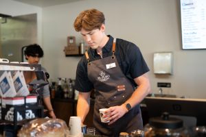 “I guess it kind of just inspired me to talk to customers the same way,” said NE student Jason Neuse, who is a barista at the cafe. “I could talk about other things I have in common with customers. It’s always nice. It’s definitely a part of the job I enjoy a lot.”