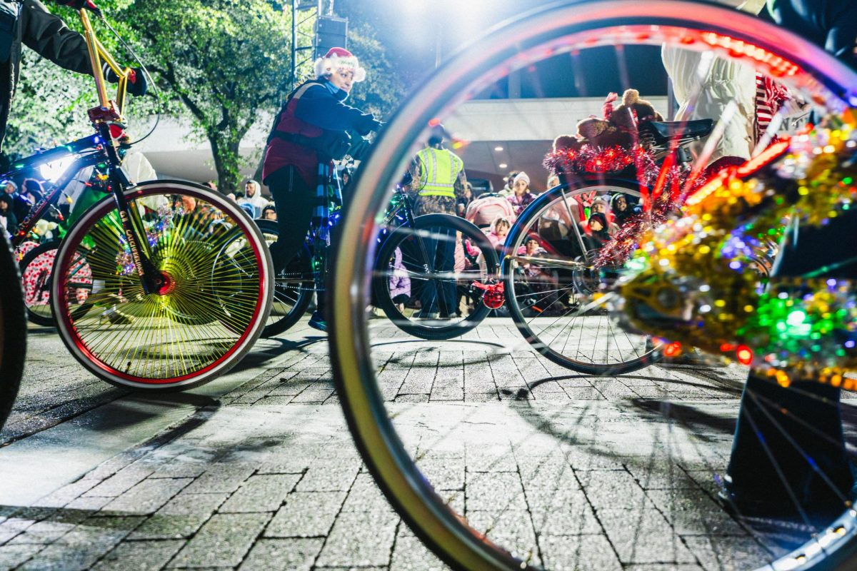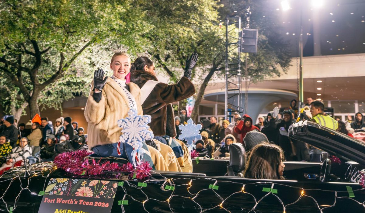 Ballet Folklorico de Fort Worth dresses in traditional attire representing different regions of Mexico. (DIEGO SANTOS)Toro stands on top of TCC’s float. (DIEGO SANTOS)Miss Fort Worth Teen Addison Pinley and Miss Fort Worth Sophia-Rose Centurioni wabe from a convertible. (DIEGO SANTOS)Fort Worth Bicycle Association rides through downtown. (DIEGO SANTOS)