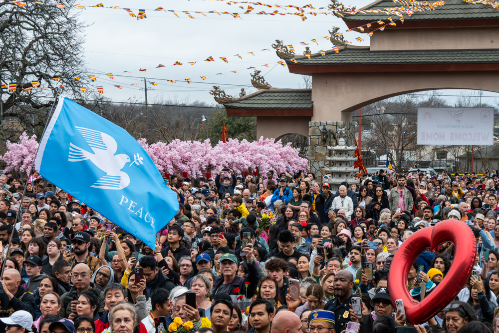 As a steady rain began to fall, several Texas politicians expressed their support for the monks’ message. Rep. Salman Bhojani of Euless said the pilgrimage “offered a living example of what peace requires,” which is discipline, sacrifice and daily practice.