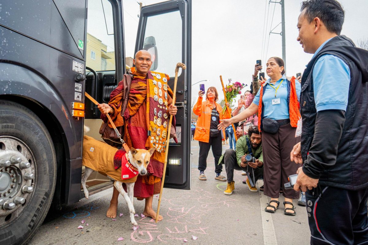 At the homecoming, each monk was recognized for the dedication and time they gave to the journey. The crowd erupted into cheers and clapping when the monks’ pet companion, Aloka, was introduced. Many of those in attendance also brought their own dogs.
